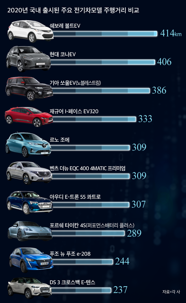 충전 대비 주행거리 등의 기술력에서 2,3위를 하고 있다.