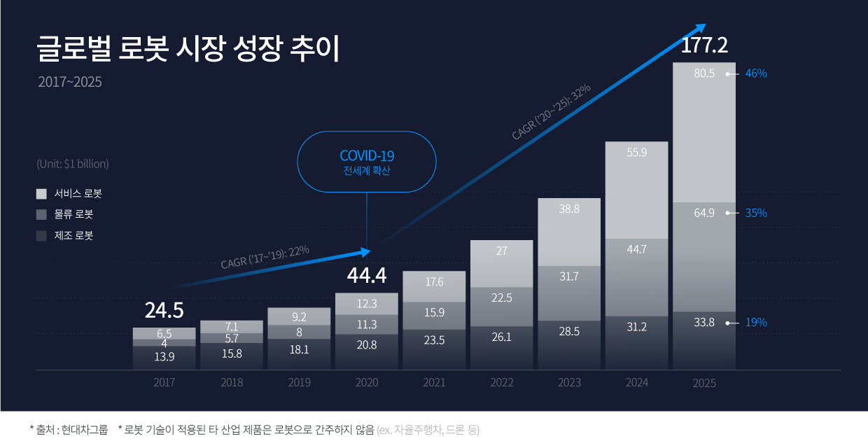 수소차, UAM, 로봇 등 미래산업과 관련하여 굉장히 다양한 카드를 갖고있다.