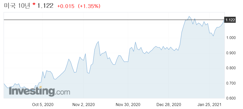 1월 11일 고점을 찍고 하락하던 미국 채권금리는