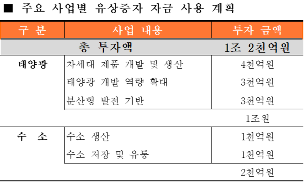 이번 유상증자의 목표는 태양광과 그린수소 사업을 위한것인만큼
