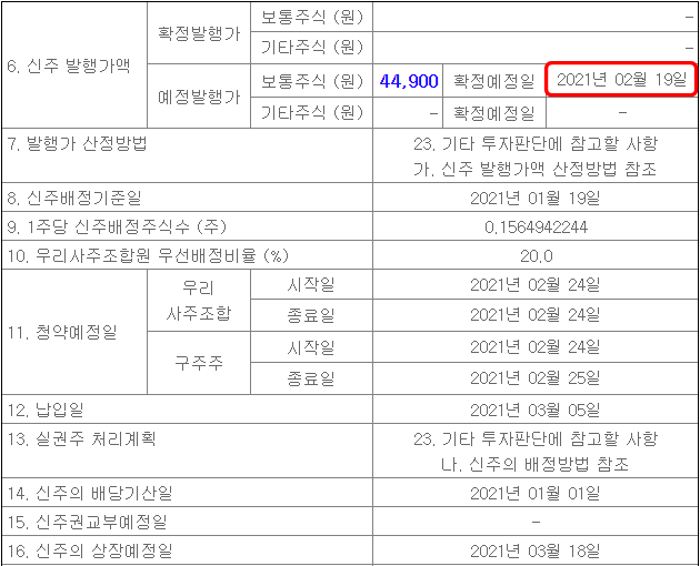 2월 19일이 최종 발행가액이 발표된다.
