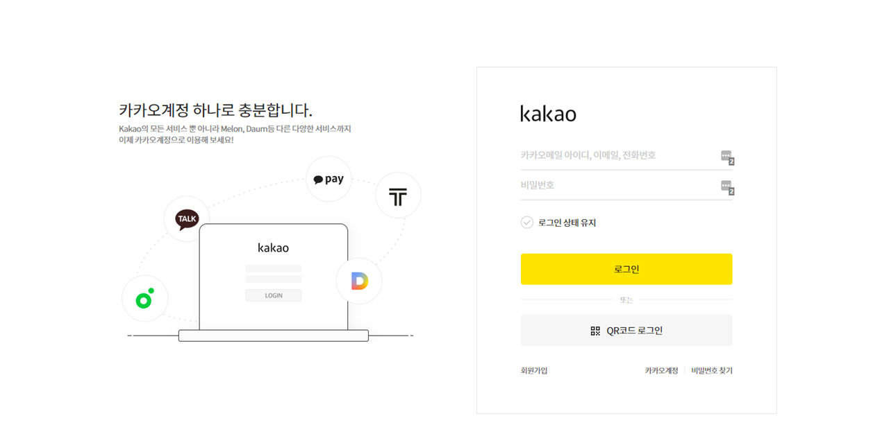 카카오계정으로 로그인을 하는것이기 때문입니다.