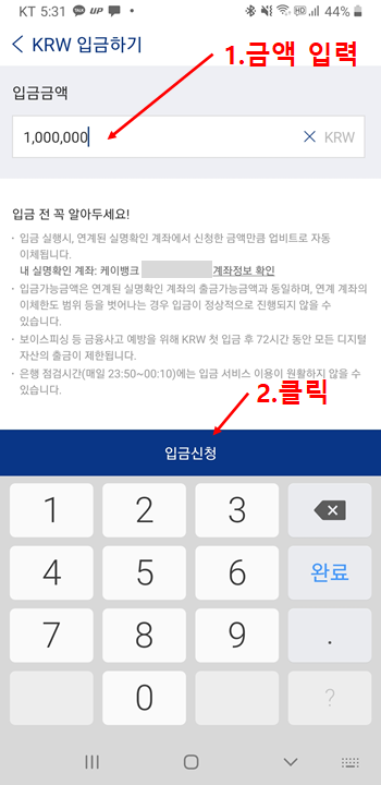이제부터는 케이뱅크로 보낸 돈을 업비트에 넣는 방법을 알아보겠습니다.