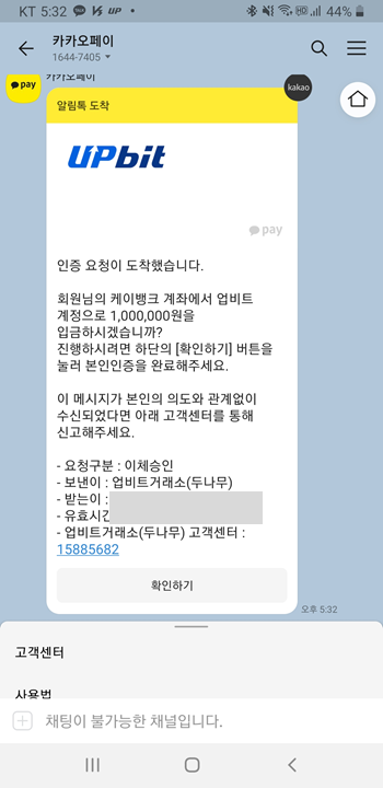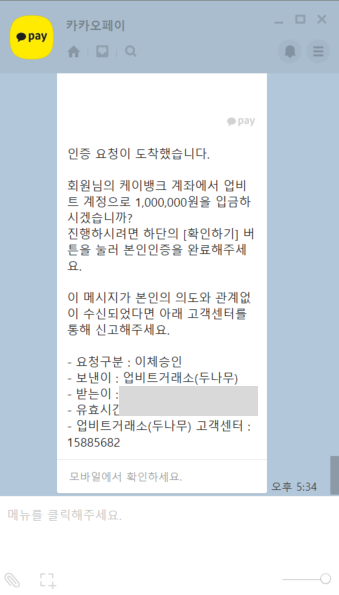그럼 이렇게 인증 요청 카카오톡이 옵니다.