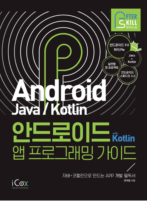 애프터스킬 출판사에서 출간된 '안드로이드 with Kotlin 앱 프로그래밍 가이드'라는 책이다.
